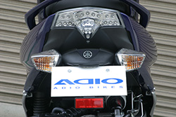 スポーティーなデザインと性能を兼ね備えたマジェスティS。しかし気になるのは、リアフェンダー。アディオのフェンダーレスキットはボディとナンバープレートを極力近づけ、尚且つ、ウインカーの位置にまで拘りました。キットにウインカーステーも付属させ、ウインカーもボディに極力近づけることによって、バランスの取れたシンプルでスポーティなリアビューを実現しています。LEDナンバー灯も付属、リフレクターステーも別体式とし、より一層のカスタムにも対応します。
