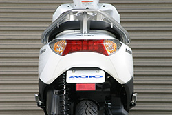 純正のリアフェンダーを取り外し、無加工で付属のナンバーステーが取り付けできるフェンダーレスキットです。全体にまとまり感のあるリード125ですが、やはり気になるのは、リアフェンダー。アディオのフェンダーレスキットはボディとナンバープレートを極力近づけ、またナンバー灯も外からはまったく見えない位置にレイアウトしているため、スッキリとシンプルなスタイルとなります。ボディデザインとのマッチングも申し分ありません。