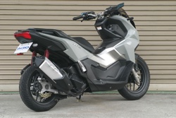 アドベンチャーテイストのADV160。ヘッドライト形状やマフラーの跳ね上げっぷり、リザーバータンク付きリアショックなど、かなりスポーティー度もアピールしています。