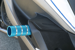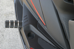 スクーター特有のライディングポジション、足を前に出したスタイル。ただ、スポティーな走りをする上で、決してベストなポジションではありません。バックステップキットは、スポーツバイクのようにしっかりと車体を支えれる位置にステップを設定しました。コーナーでも直進時でも、安定性が増し、よりアグレッシブな走りが可能となります。もちろん、タンデムステップとしてもご使用できます。