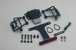 ナンバープレートの位置を変更しても、純正のナンバー灯と、純正のリフレクターでは、スタイルが台無しです。キットには、LEDナンバー灯とスリムリフレクターを付属させました。このナンバー灯とリフレクターを使用することにより、トラス構造のステーと相まって、より一層のシンプル&レーシースタイルを完全な形としています。