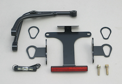 新型MT-09は従来型より、一層アグレッシブさが増しています。ネイキッドとスーパーモタードの"異種混合"スタイル。片持ちリアフェンダーも独特な雰囲気を出して います。このリアフェンダーを取り外し、ナンバープレートのみとしたフェンダーレスキットです。ナンバー灯やリフレクターなど塊感の強いフェンダーを外し、スッキリとシンプルに。またリアウインカーの左右間隔を狭めたウインカーステーも付属し、一体感のあるテール周りを実現。