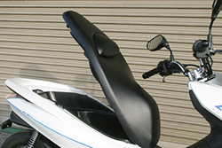 シートストッパーは、途中の角度でシートを固定することができます。ハンドルロックを掛けている状態でもシートをロックでき、手を離してもシートは下がりません。ヘルメットの出し入れも可能です。ロック解除は、シートを少し上方向へと上げるだけ。ハンドルが真っ直ぐの状態ではもちろん、シートを全開することができます。