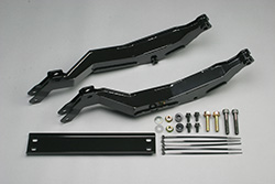 ホイールベースを160mmロング化し、迫力のスタイルを実現しました。車両フレームに取り付けるサブフレームは、独自のH断面構造とし、曲がり強度を向上させています。ブレーキワイヤー、アクセルワイヤー、燃料ホース、コンピューターハーネスも取り回しの変更のみで対応でき、コストパフォーマンスに優れています。2種系スクーターとは思えないほど、堂々とした存在感と迫力のリアビューが実現できます。