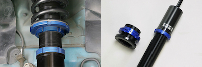 一般的な車高調整サスペンションは、スプリングのロアシートの高さを変更して車高を変更します。ただ、この場合、車高を下げていくと、ストロークがどんどん減ってしまうことと、スプリング自体が遊んでしまいます。ADIOのキットは、タンパー自体のケース長を変更することにより、ストロークを変化させずにローダウン化が可能です。またスプリングも遊ぶこともありません。車高に関係なくプリロードも調整可能です。